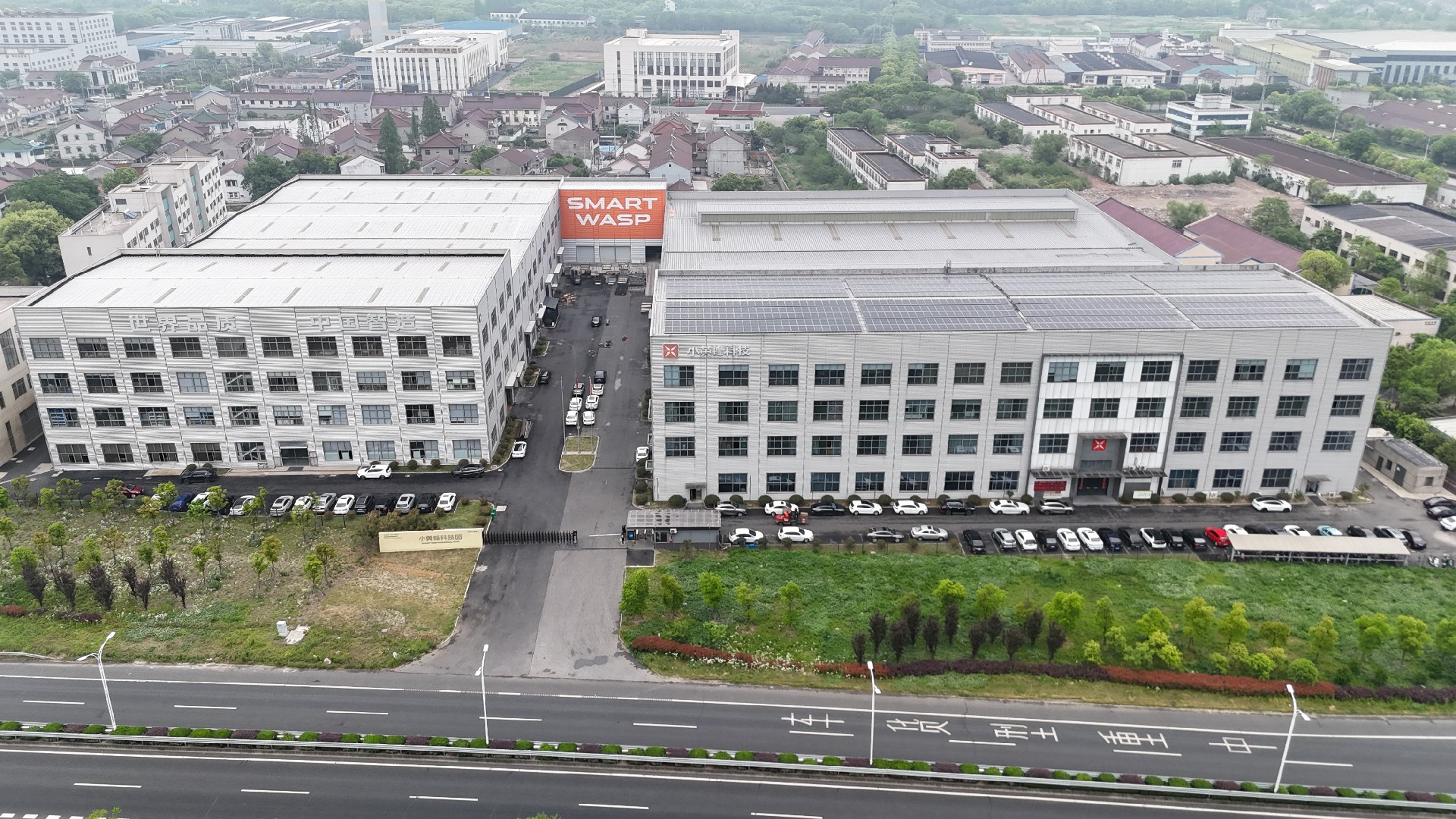 2025年4月21日上午十時(shí)左右,無錫阿凡達(dá)網(wǎng)絡(luò)的拍攝團(tuán)隊(duì)準(zhǔn)時(shí)抵達(dá)蘇州小黃蜂科技園區(qū)。此次拍攝的核心目標(biāo),是為其即將在淘寶平臺(tái)**的標(biāo)準(zhǔn)化智能纏繞機(jī)建立完整的產(chǎn)品視覺資產(chǎn)。在接待人員的引導(dǎo)下,團(tuán)隊(duì)徑直走向園區(qū)右側(cè)的淺灰色標(biāo)準(zhǔn)化廠房——這棟建筑外墻簡潔利落,"小黃蜂科技"的標(biāo)識(shí)與屋頂?shù)奶柲馨尻嚵行纬涩F(xiàn)代工業(yè)的視覺符號(hào)。